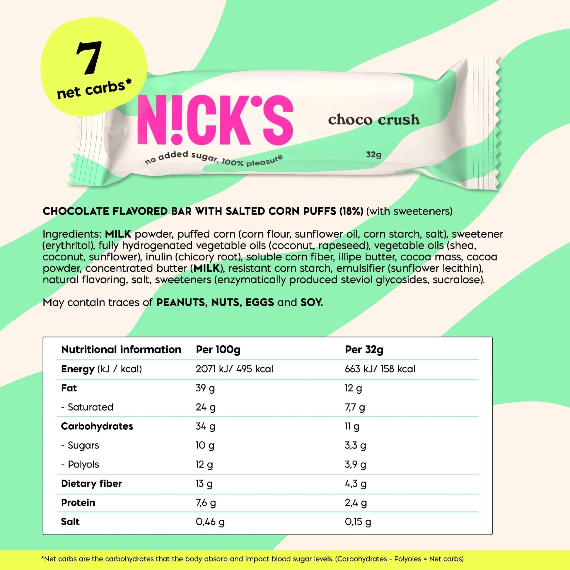 Sobib diabeedi, süsivesikutevaese dieedi, keto, gluteenitalumatuse korral, aga peamiselt kõigile, kes soovivad nautida ja tunda end samal ajal hästi. no added sugar. 100% pleasure. NICK'S